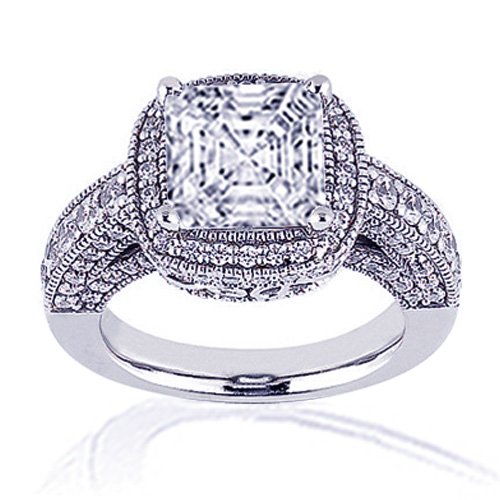 The classic halo shown here in platinum features a 2 carat Asscher cut diamond, The classic halo shown here in platinum features a 2 carat Asscher cut diamond, 56 round ideal cut diamonds weighing a total of 0.90 carats. Take notice that ... View Video